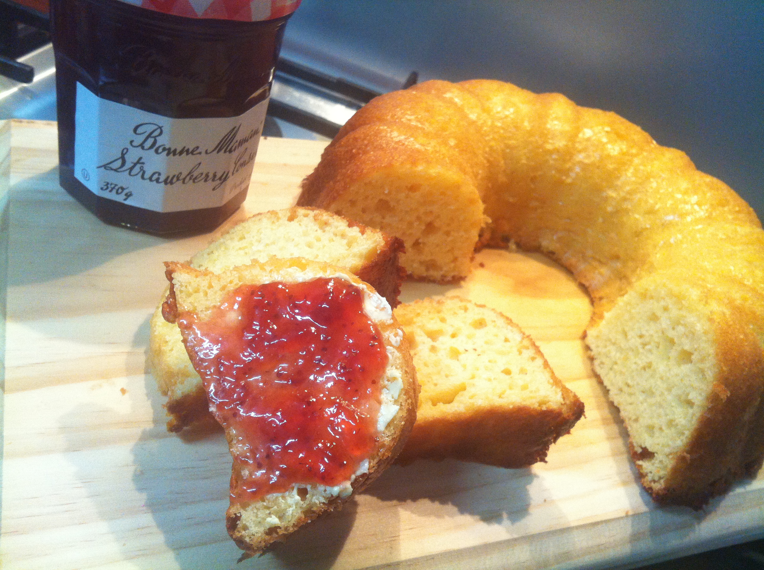 Still in catchup mode – tonight we are baking from the recipe book of Picardy. Le gateaux battu Picardie (or ‘beat cake’) is a specialty of the Somme area of France, and more specifically, Abbeville. It is basically a yeast cake, rich in butter and eggs. It is traditionally hand beaten and baked in a tall fluted metal mould that resembles a chefs hat. The end result, when baked in the correct mould, is a cake that I think most closely resembles the Italian panettone in shape and an airy brioche in texture. This cake is traditionally served either for breakfast with jam or for goûter – the almost universally observed French ‘afternoon tea’. A tradition worth adopting, I think!
