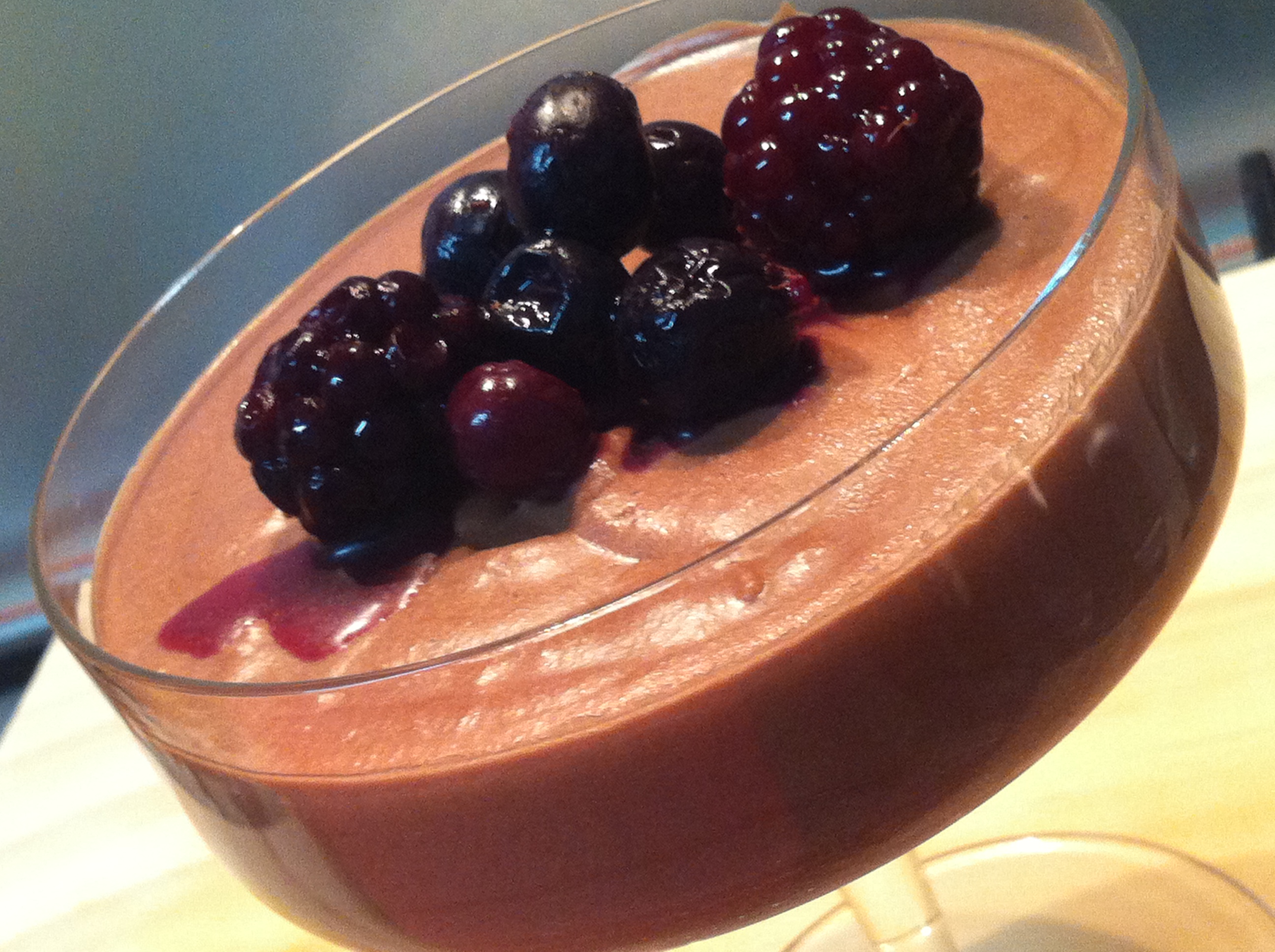 Pour the mixture into 4 glasses (vintage champagne glasses just feel right for this!) and refrigerate for 2 hours (minimum) before serving with berries and a dash of extra creme if preferred.