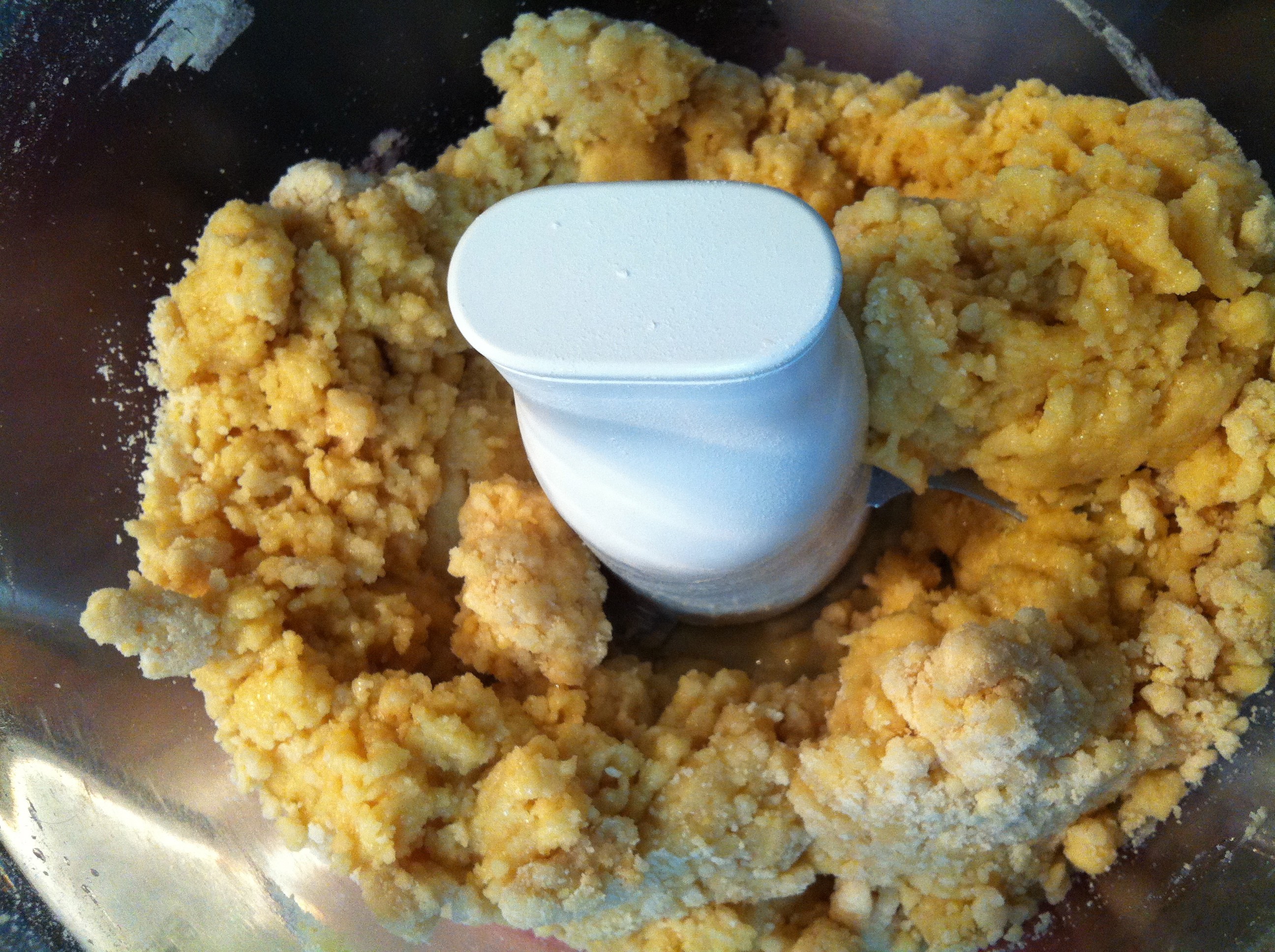 2. Pulse the food processor a few times to blend the flour, sugar and salt. then, with the motor running add the egg, melted butter and yeast mixture. Mix just until the mixture comes together – be careful not over work! This dough needs to be soft and pliable.