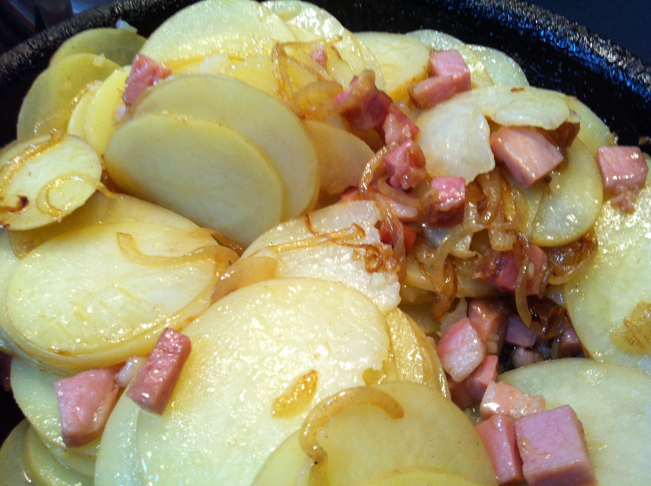 - 1.5 kg (about 3 lb) potatoes, cooked in the skin then cut into 1 cm slices