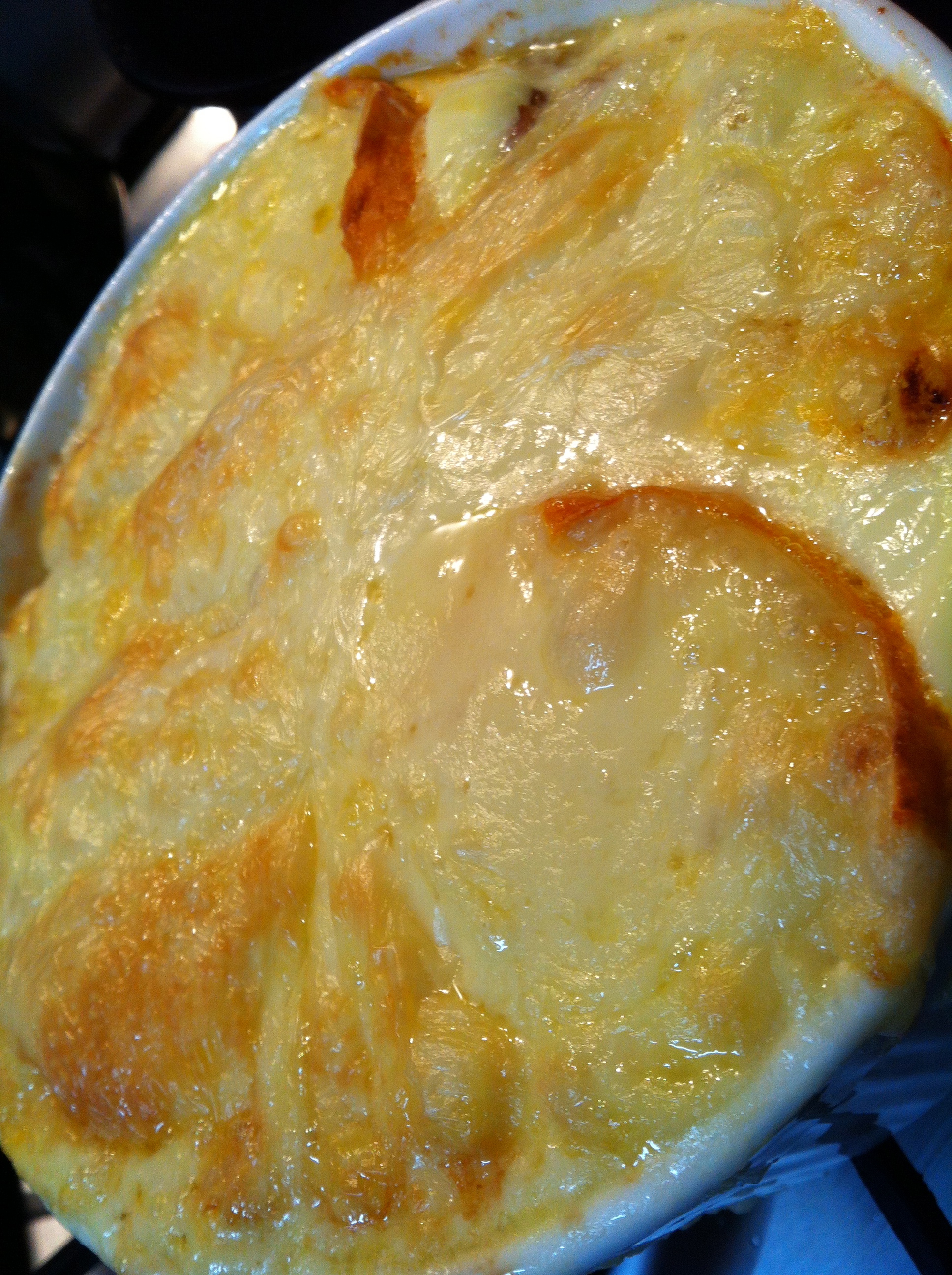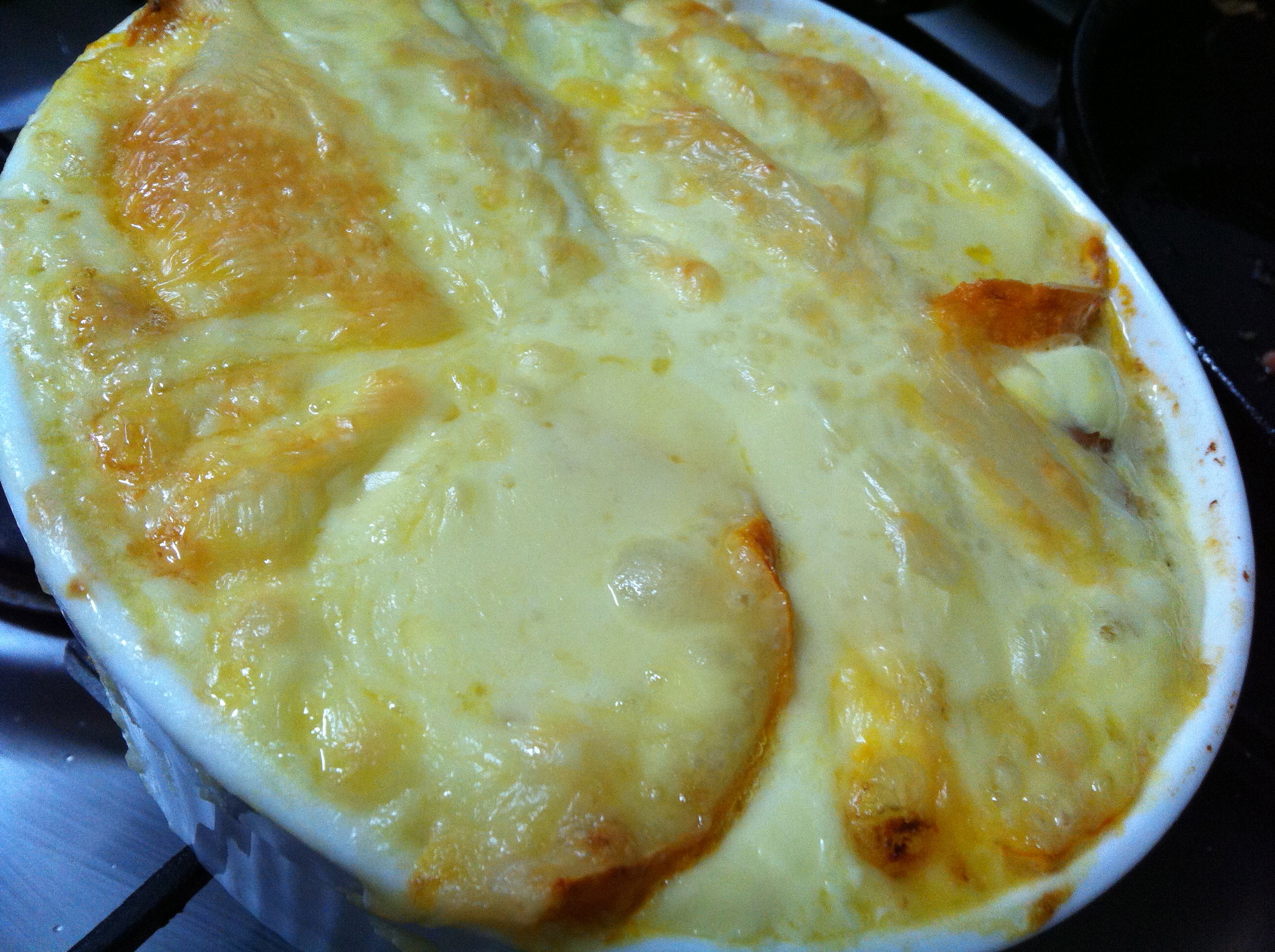 According to Gabriel Gaté, this is french party food for ‘young people’ (showing your age there, Monsieur Gaté!) and a popular dish in the French Alps, particularly during ski season when the fortifying warmth and richness is welcomed after a hard day out on the slopes (probably helps to offset the calories as well! This dish goes to your hips just by looking at it!)