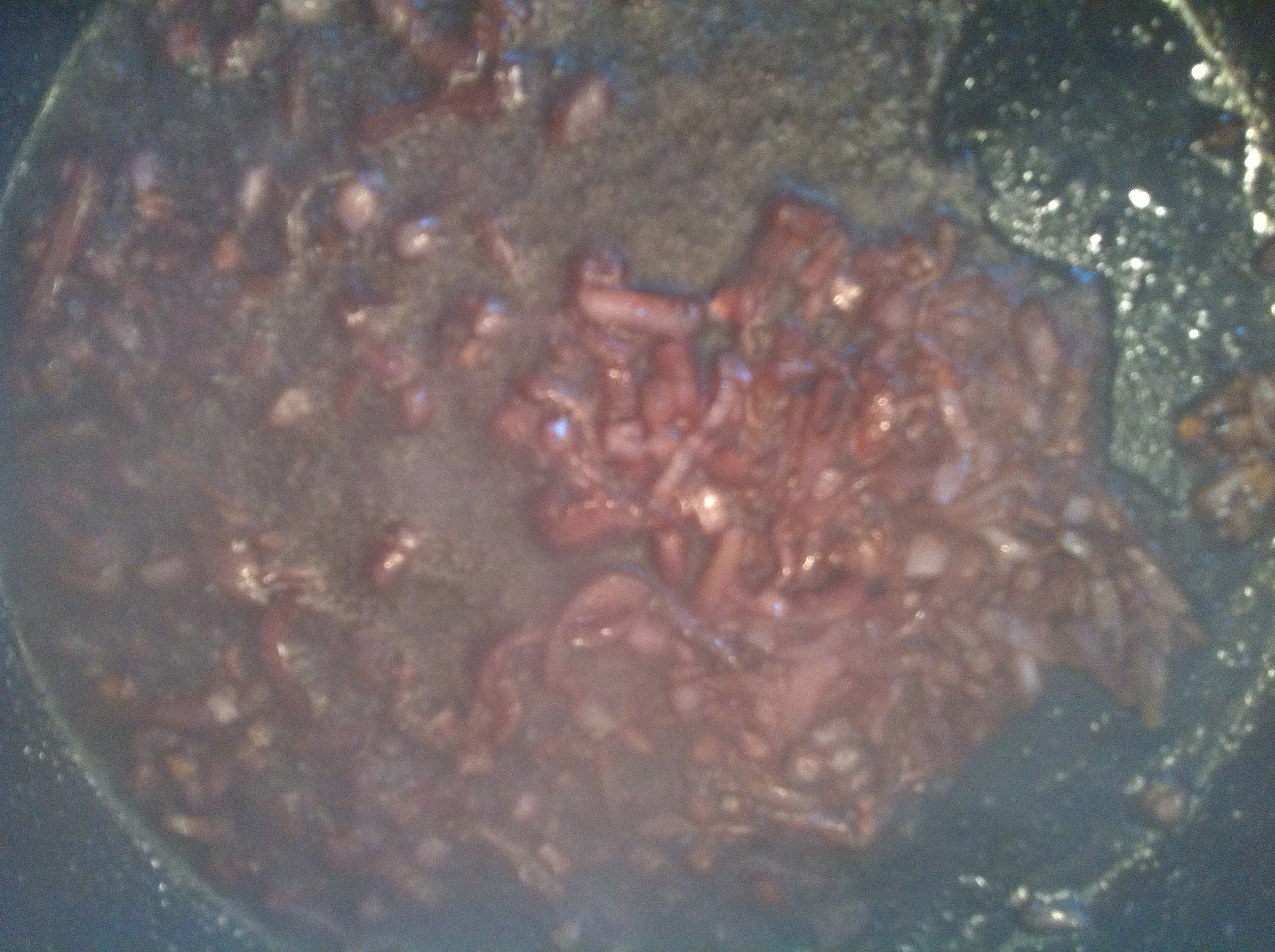 When the duck breasts are finished in the oven, transfer them to a plate and cover with foil to rest. Tip the duck fat out of the skillet and add in the shallots. Fry these off for a minute or two and then add the red wine. Let this bubble up and evaporate most of it off before adding the chicken stock and bringing the sauce to a simmer. Now you can throw in the prunes and let the whole thing come back to the simmer for a few minutes.