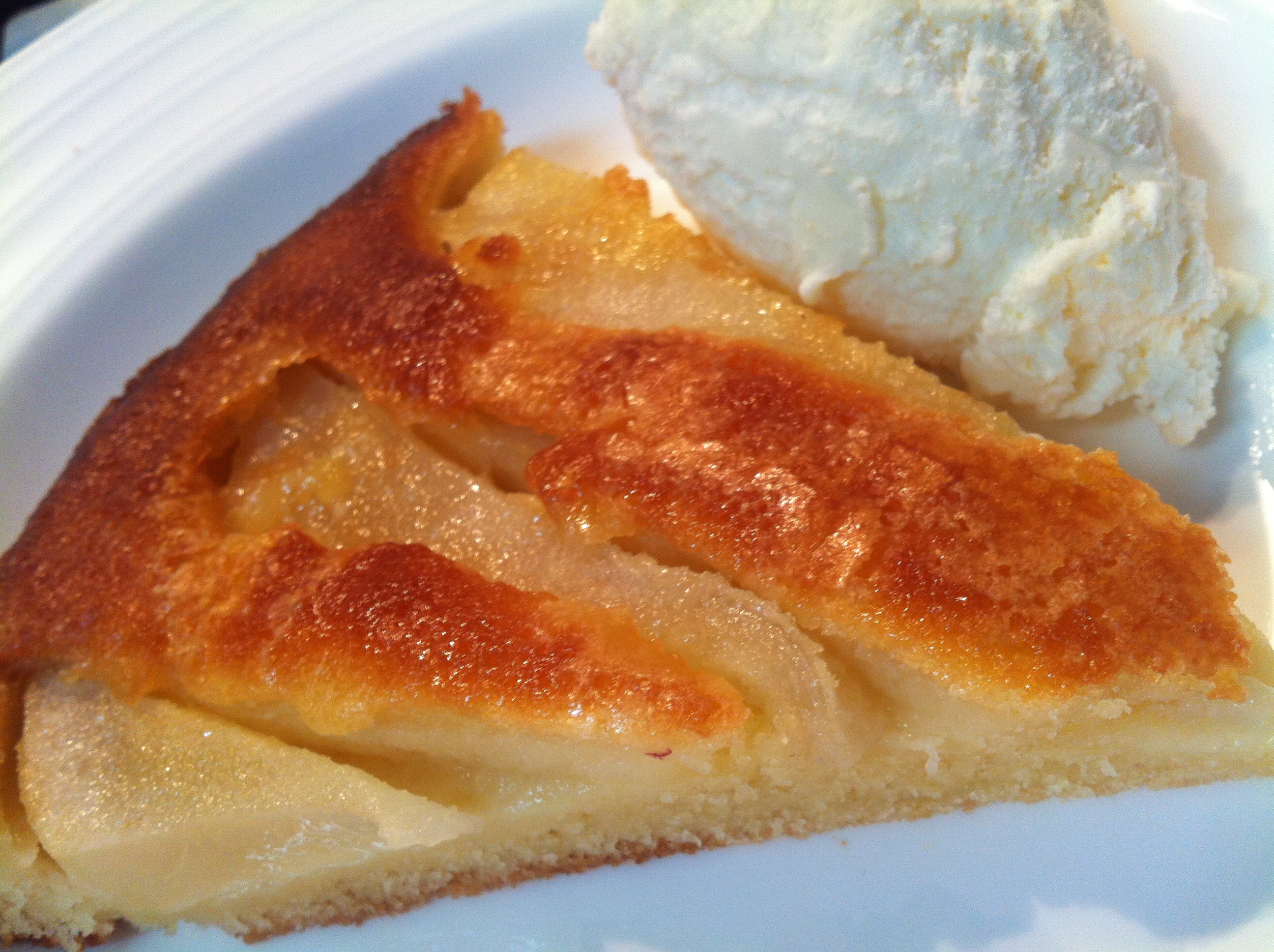 Now, this is one of those puddings that should not need a recipe. This is one of those dishes that your nan or your mum just used to knock up, seemingly out of thin air, and deliver still warm from the oven to the dinner table. Warm, substantial and soothingly unctuous this Tarte de Cambrai is one dessert that will slot effortlessly into your repertoire. I have used Beurre Bosch pears today in an effort to stick with tradition, but this could easily be made with whatever fruit you have on hand.