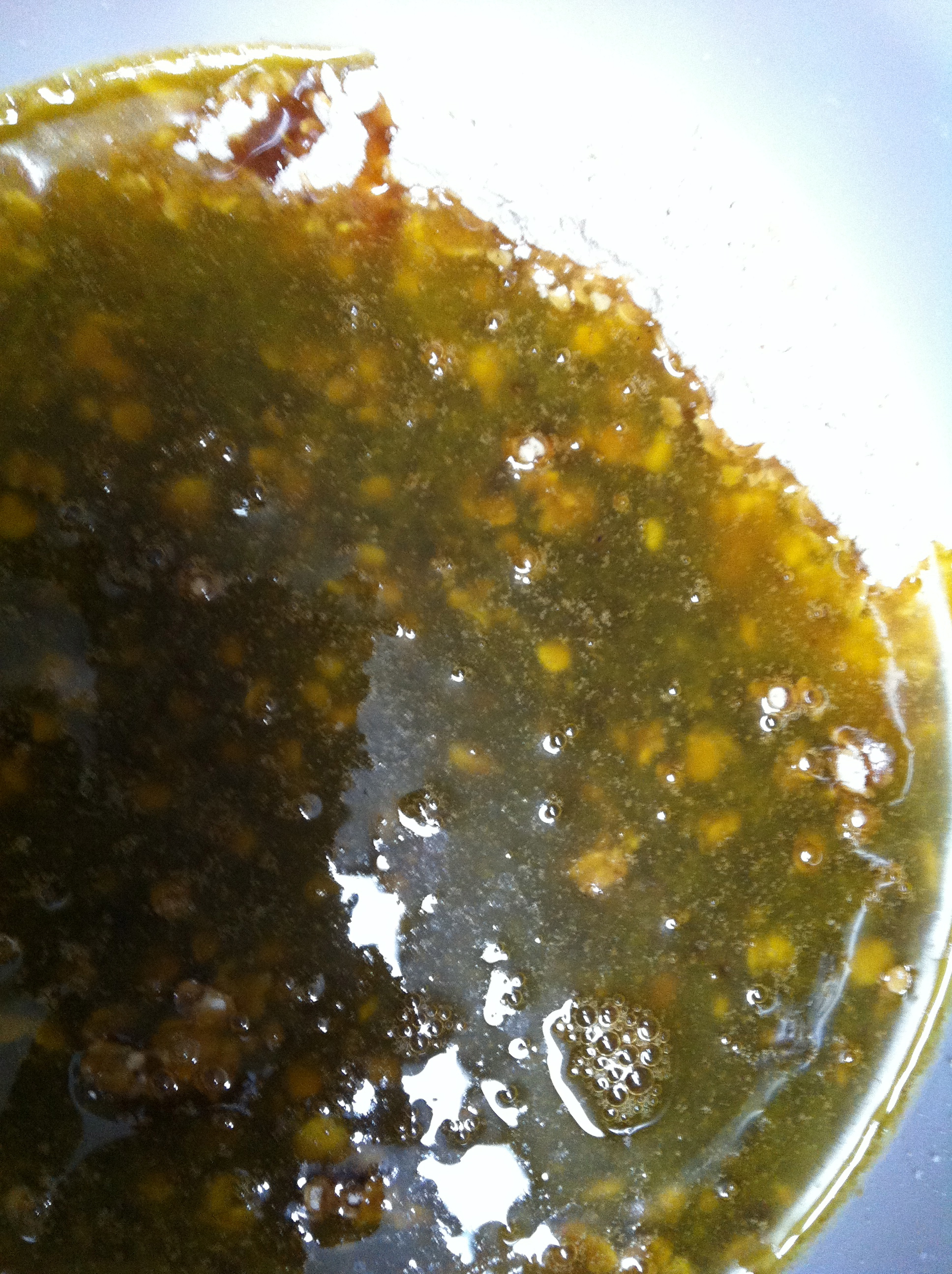 Preheat your oven to 140 degrees celsius. In a heavy bottomed saucepan over a low heat melt together the butter, sugar, treacle and golden syrup. Take care not to let this boil, you just want to gently melt the ingredients and stir them together.